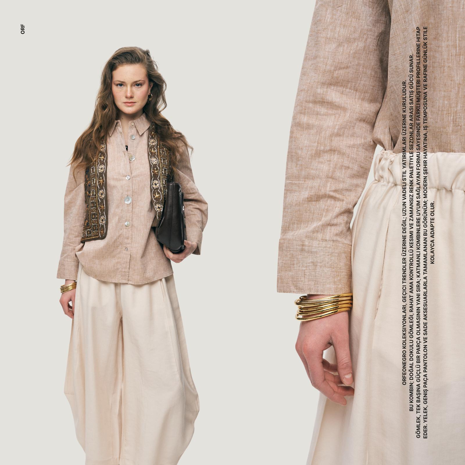 Modern kadının aradığı çabasız zarafeti temsil eden bu tasarım, yüksek kalite keten dokusuyla rafine bir stil sunuyor. Yüksek bel kesimi, karakteristik gold tokalı kemer detayı ve akışkan pilili yapısıyla her vücut tipine uyum sağlayan bu parça, koleksiyonunuzun en çok satan joker tasarımlarından biri olmaya aday. Hem ofis şıklığında hem de günlük kombinlerde sunduğu çok yönlü kullanım avantajı, müşterileriniz için vazgeçilmez bir tercih sebebi yaratacak.